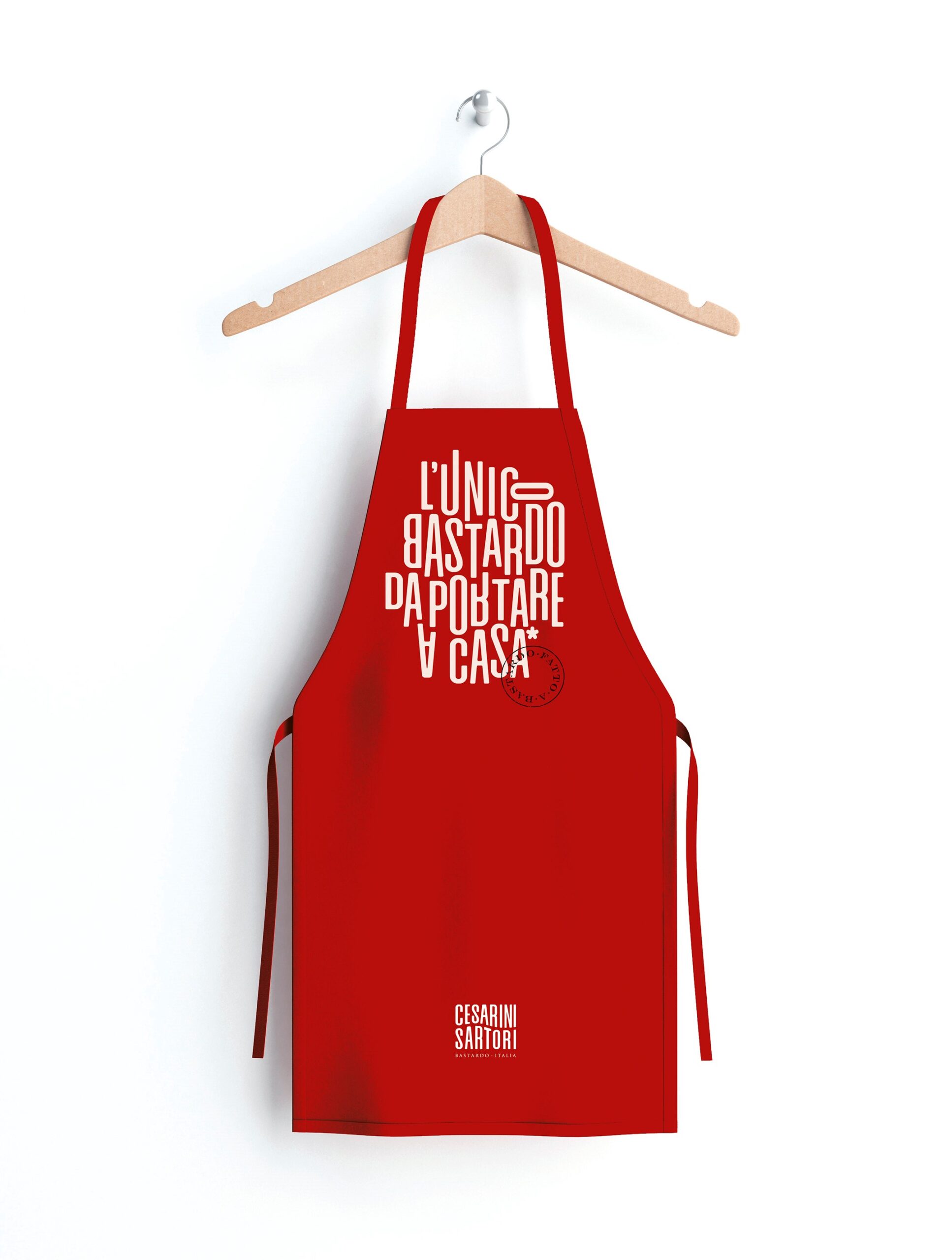 Grembiule rosso con pettorina, ampia tasca frontale a 2 scomparti, regolabile con fibbia di metallo.